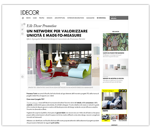 TID nasce con un grande obiettivo: creare un network in grado di far circolare le idee più giovani e creative nell’attuale panorama del design rendendo così più efficace e semplice l’incontro tra domanda e offerta. Giovani designer e architetti possono caricare online i propri lavori, a fianco di quelli dei professionisti già affermati, creando una proposta unica nel panorama mondiale: un’infinità di idee, spunti, proposte che ti aiuteranno ad arredare casa, ufficio, locali, seguendo le idee più attuali e interessanti.