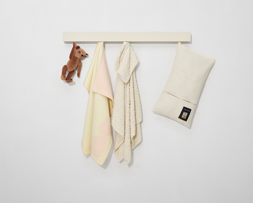 The range dedicated to children includes iconic and original objects, designed to integrate with the home environment and stimulate curiosity: from the ingenious Vidar 4 storage bag – capable of transforming into a play or organization space – to the soft Asator velvet teddy bear made in collaboration with the historic Margarete Steiff plush company. There are also practical accessories such as cotton terry hooded towels with jacquard logo and a matching cotton bucket hat , ideal for accompanying daily routines with a touch of style.