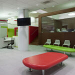 Gli interni, tutti su disegno, richiamano liconografia classica della farmacia, la croce verde, che la rende immediatamente riconoscibile. Con la croce è risolto il sistema di illuminazione del salone e anche parte del sistema espositivo. Tutto di colore verde.