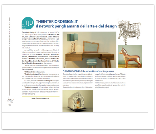 TID nasce con un grande obiettivo: creare un network in grado di far circolare le idee più giovani e creative nell’attuale panorama del design rendendo così più efficace e semplice l’incontro tra domanda e offerta. Giovani designer e architetti possono caricare online i propri lavori, a fianco di quelli dei professionisti già affermati, creando una proposta unica nel panorama mondiale: un’infinità di idee, spunti, proposte che ti aiuteranno ad arredare casa, ufficio, locali, seguendo le idee più attuali e interessanti.
