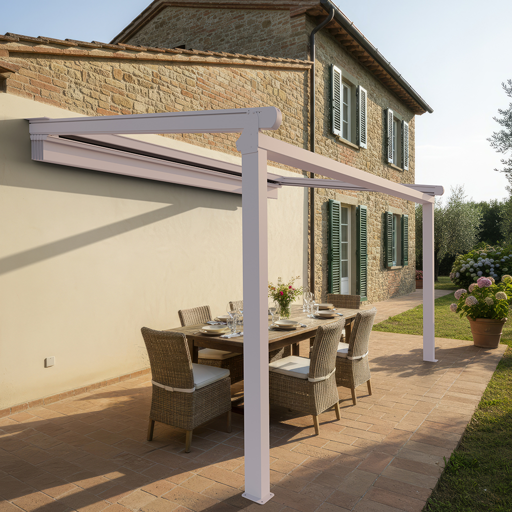 L’impianto progettuale si fonda su parametri tecnici orientati alla durabilità e all’affidabilità strutturale. La configurazione del sistema è studiata per assicurare un’elevata resistenza meccanica, mantenendo performance costanti anche in condizioni climatiche critiche. Il sistema di movimentazione, abbinato a componenti realizzati in acciaio, rappresentano elementi distintivi, in grado di garantire uno scorrimento fluido, preciso e silenzioso del telo, contribuendo alla qualità complessiva del sistema.