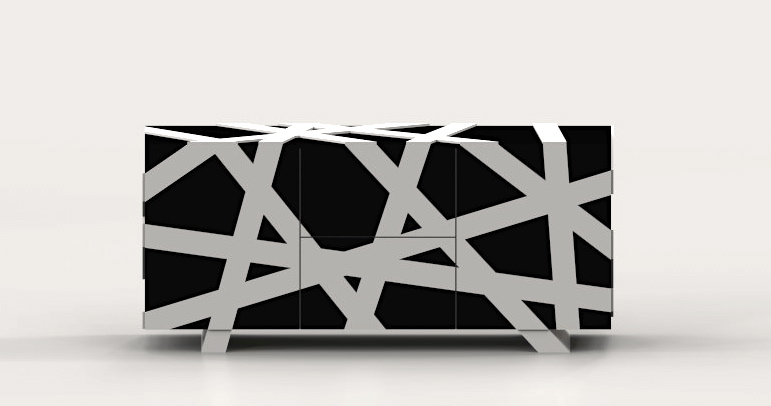 Nest è una credenza in multistrato verniciato. La semplice forma rettangolare è avvolta ed impreziosita da un intreccio di fasce di legno in rilievo che simboleggiano l’intreccio dei ramoscelli di un nido di uccelli, da qui il nome del progetto, già presentato in precedenza sotto forma di vetrinetta.