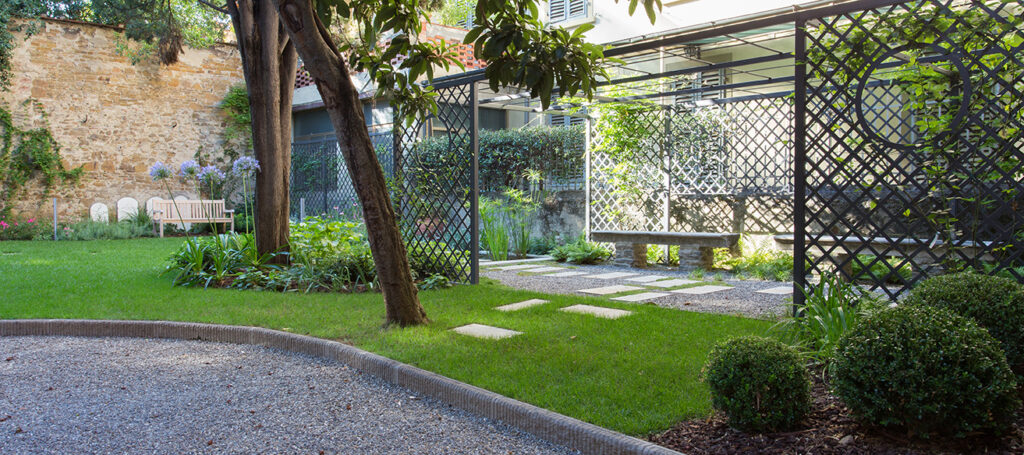 Lintervento di ristrutturazione eseguito ha dato vita ad un giardino rigoglioso, ricco di profumi e suoni. Attraverso una quinta di bamboo, dal giardino allitaliana con le sue forme rigide e geometriche, si passa ad un giardino di gusto romantico, con piante erbacee ed arbustive dalle fioriture abbondanti, una vasca con ninfee e falso papiro e […]