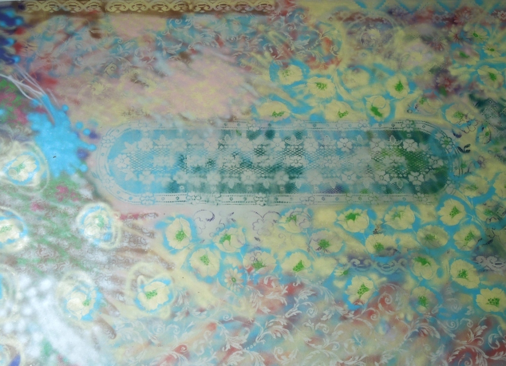 Pavimento per il pianerottolo d’ingresso di Palazzo Clerici a Gorgonzola. L’artista ha utilizzato colori spray su base in cemento per realizzare l’opera “Genesis of the Floor”