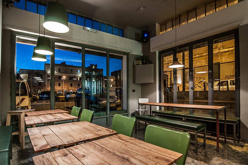 easy as complex and friendly…. Il locale si presenta accogliente dalle tonalità neutre per esaltare il legno grezzo dei tavoli e del banco. L’interno come continuazione dell’esterno. easy as complex and friendly