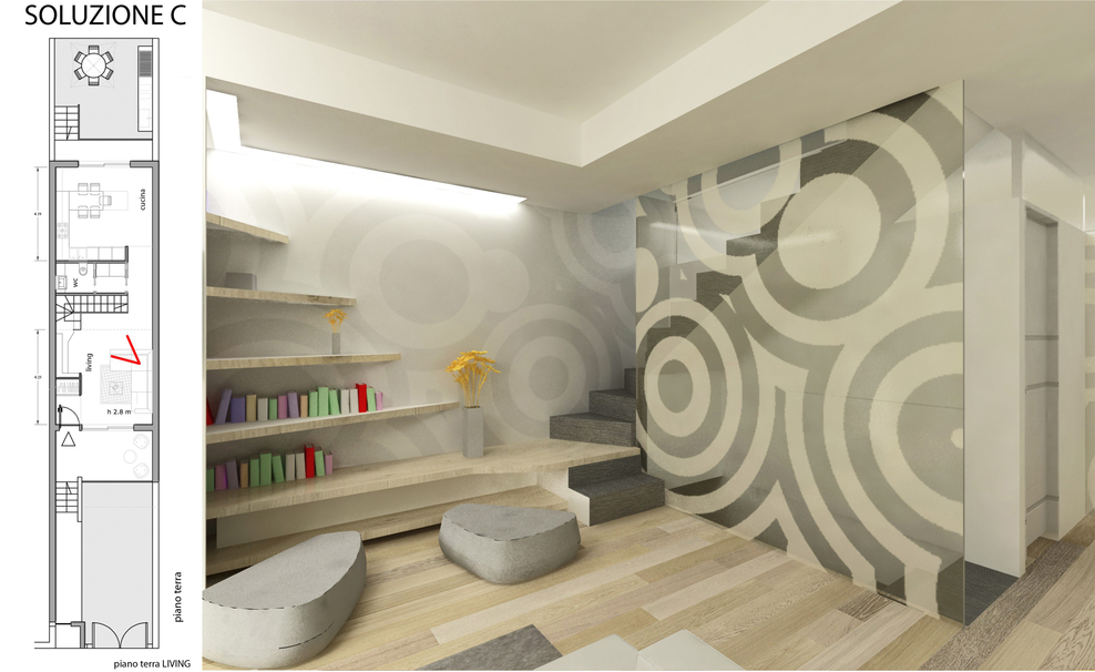ristrutturazione di un appartamento a Roma di 50 mq. L’idea sviluppata nel progetto è basata sulla ricerca di sfruttare tutti gli spazi disponibili, La zona living è ampia e luminosa caratterizzata dal colore rosso che ha un effetto estetico con un gioco di contrasti della parete attrezzata con ripiani utilizzati come libreria. Il gioco di […]