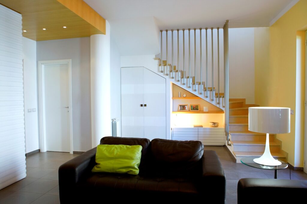 Progetto di interni e arredamento di una villa su due livelli per una coppia con bambina. Il progetto ha mirato ad ottenere il massimo dello spazio percepito e sfruttato operando su ambienti dalla superficie risicata.