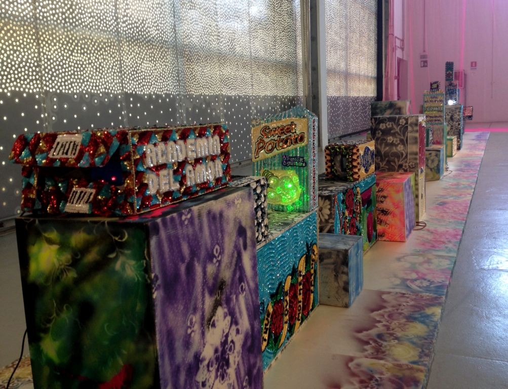 The Criminal Aesthetic Fashion Soundsystem is a machine of music-aesthetic, full of color, music and lights, that sings and tells stories through the living space. The installation includes fifty sculpture-speakers in different dimensions covered by a visionary iconography made by sequins and spray paint, all in unique pieces. Each of us has a personal soundtrack […]