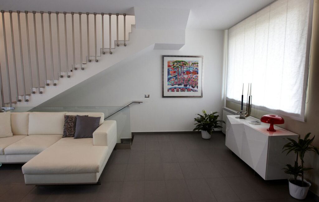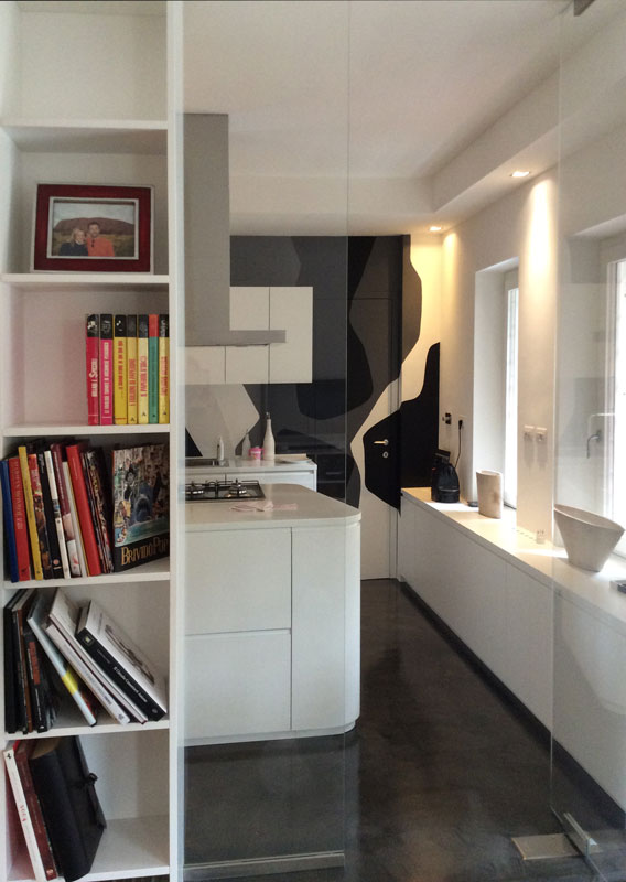 La ristrutturazione per la casa di Andrea e Valentina è improntata ad un’idea forte di rendere partecipe dell’area rappresentanza tutta una serie di funzioni che gravitano intorno ad essa. Scorci, visuali prospettiche, sfondi e chiaroscuri completano l’opera mediando la presenza di arredi esistenti e customizzati.
