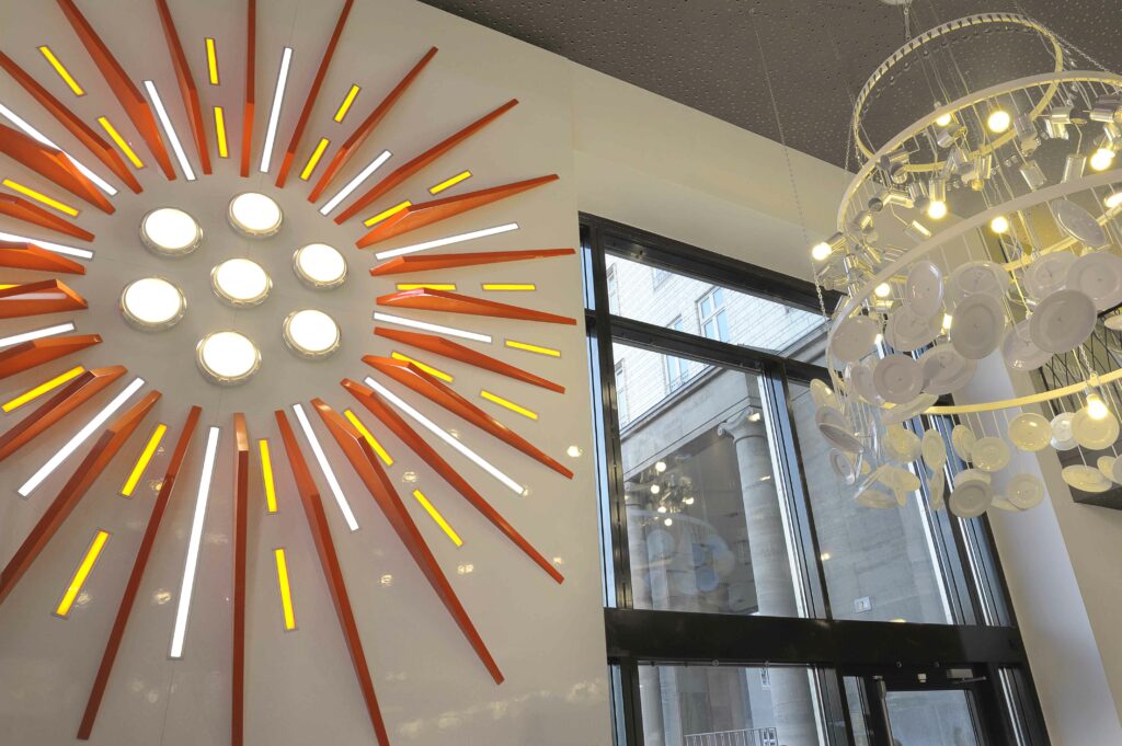 Si tratta di una lampada da tavolo, antiurto, danzante. La forma consueta (un abat-jour a forma di abat-jour appunto!), viene realizzata utilizzando dei materiali inconsueti: legno per il paralume, gomma riciclata per lo stelo e bio-plastica per la base. Il design della lampada è impreziosito dalla presenza di gocce di cristallo molate e sfaccettate che […]