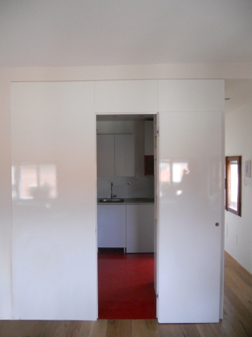 Un restauro di un appartamento a Venezia, un duplex all’ultimo piano. Liberato di tutte le superfetazioni, l’appartamento ha bisogno di alcuni spazi di servizio (la cucina e il agno al piano superiore). La filosofia del progetto è quella delle aggiunte invisibili. Aumentare i servizi senza mostrarli, come nascosti dietro a blocchi bianchi, apparentemente impenetrabili. Una […]