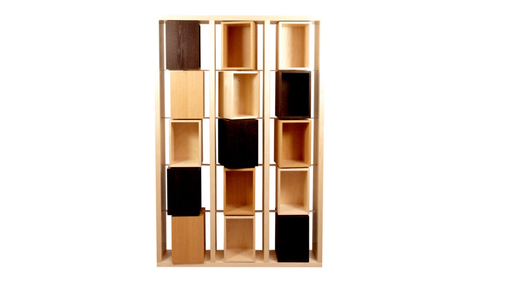 360 is a bookshelf composed of rotative cases. This allows you to change the aspect of your object everyday. simple and original it can be disposed in the middle of a space and you can access your books from all sides.