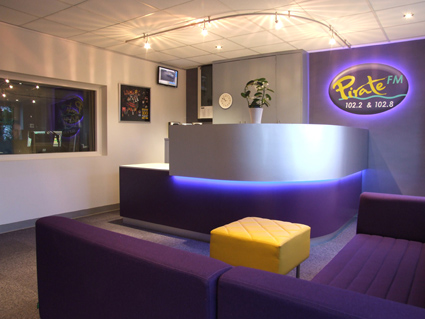 Refurbishment of the reception area at a local radio station, including design of bespoke desk and reception seating.