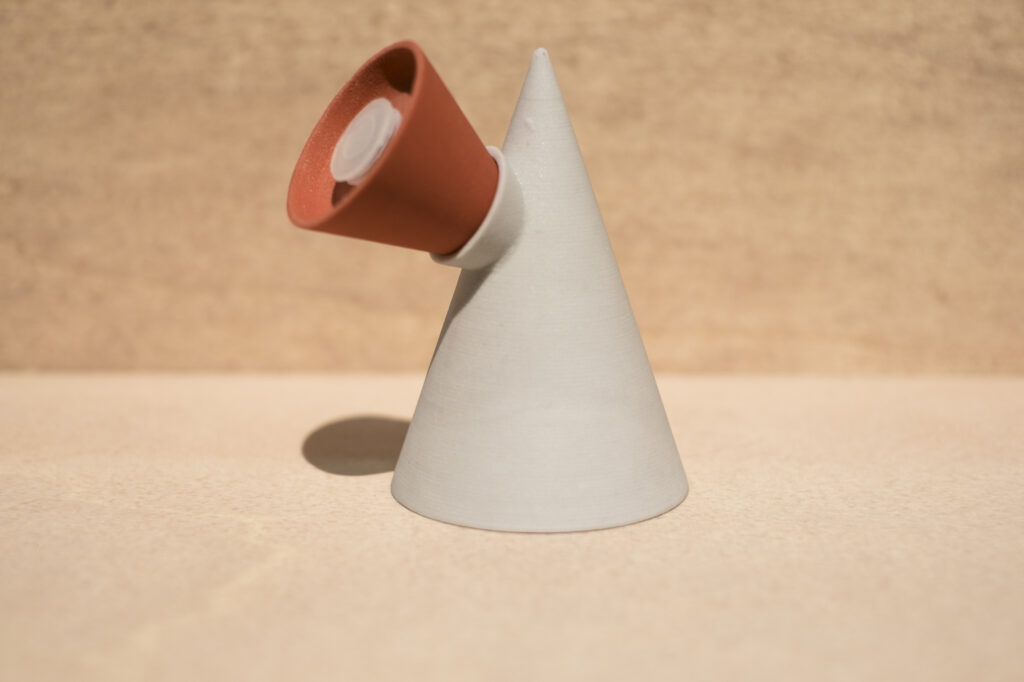 q.b. è un sale-pepe dalla forma semplice e chiara, due coni uno dentro laltro. La forma prende spunto del vecchio megafono che è stato ripensato come contenitore, uno per il sale, laltro per il pepe. Incastrandosi uno con laltro, in posizione verticale il sale, inclinato il pepe, ricordano il gesto del parlare al megafono.