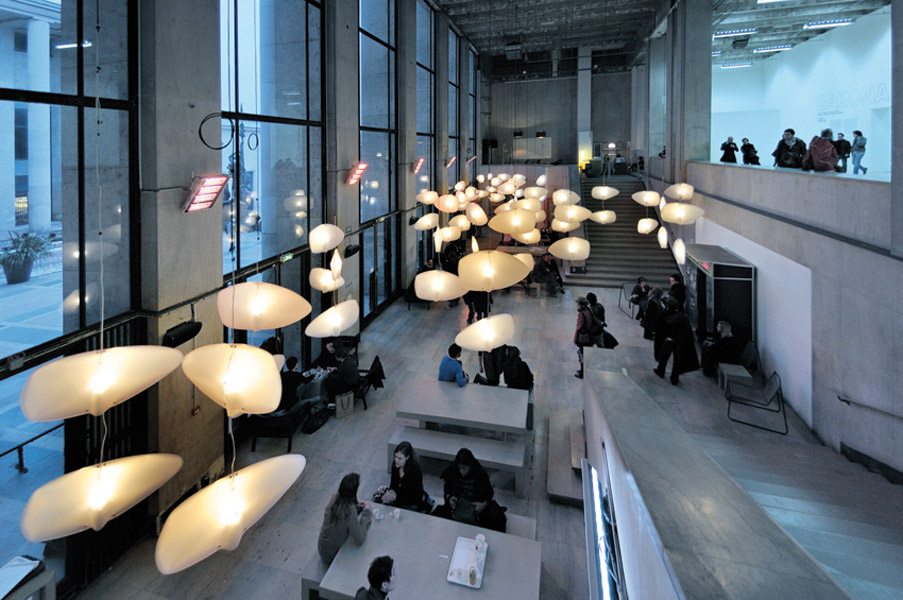 The installation at the Paris-assas library is compose by the smoothie collection’s suspensions and .