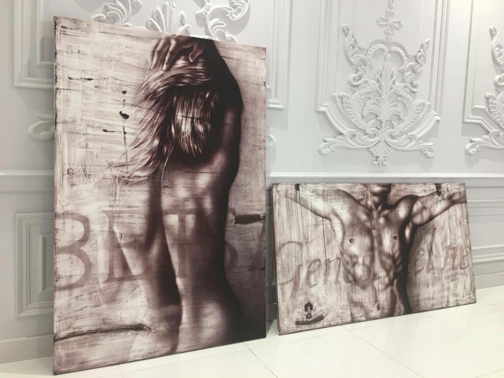 dipinto acrilico su tela trattata precedentemente con stucchi.