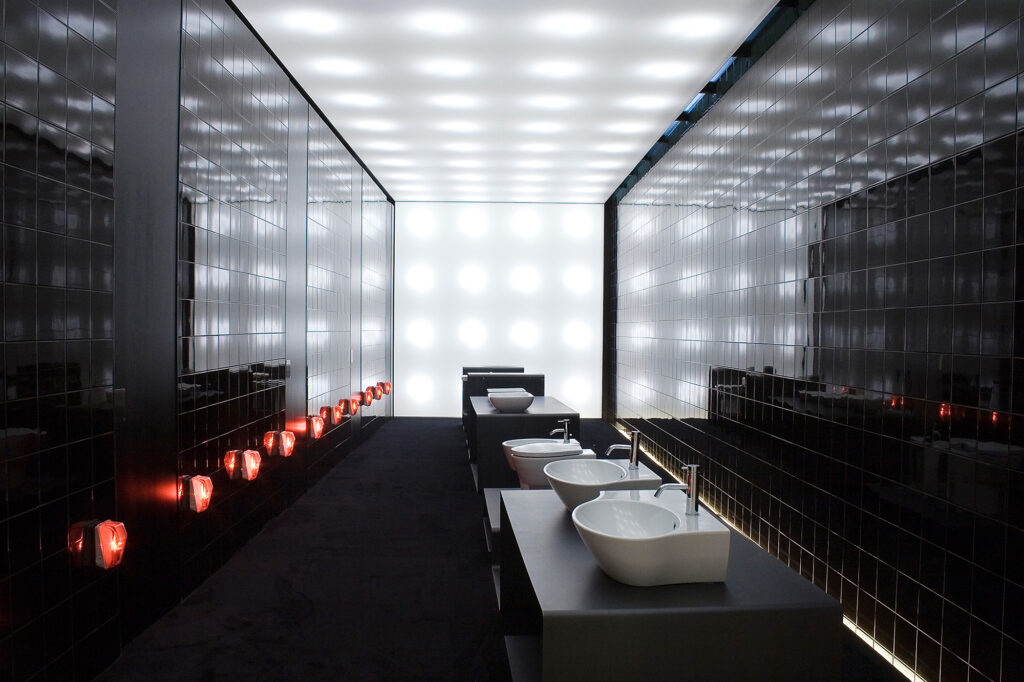 Itâs the project of an unconventional and theatrical space aimed to match the plastic qualities of Marazziâs bathroom products. Defined by a freely moving plastic curtain whose fluid aesthetic enhances the projectâs theme, the space is divided in two. The first section is filled with a calm abstract atmosphere, with a graphically patterned floor of […]