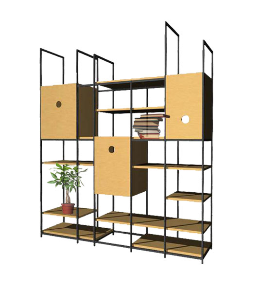 Library dial cm.262 X 300. Libreria componibile in moduli di legno massiccio e ferro. Scaffali di design moderno per soggiorno ed ufficio.