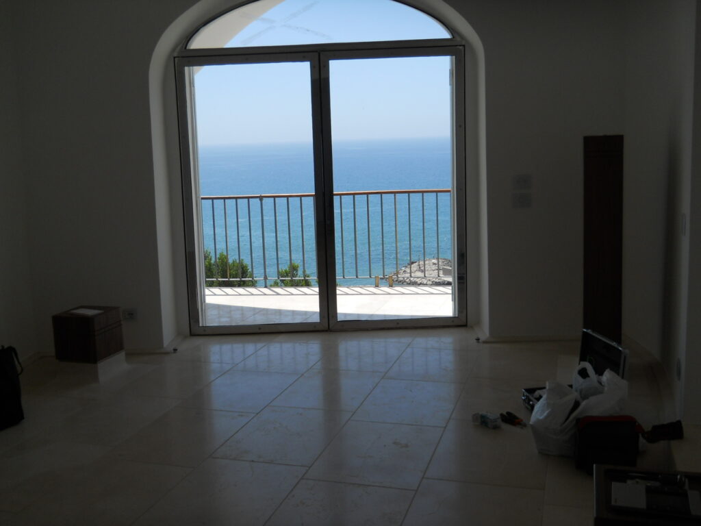 ristrutturazione di una casa nel centro storico di Sperlonga con totale rifacimento degli interni e rilettura del rapporto con il mare attraverso i nuovi infissi