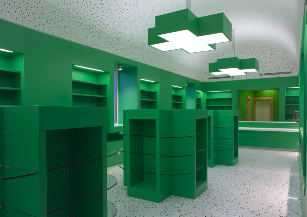 Il progetto riguarda la ristrutturazione di un fabbricato dei primi del 900, appendice della stazione ferroviaria, da tempo non utilizzato e prospettante su via Ridolfi. Il locale di forma rettangolare allungata ha una superficie complessiva di circa 200 mq, di cui la metà, nella zona centrale, è riservata alla vendita di farmaci, profumeria e parafarmaceutici. […]