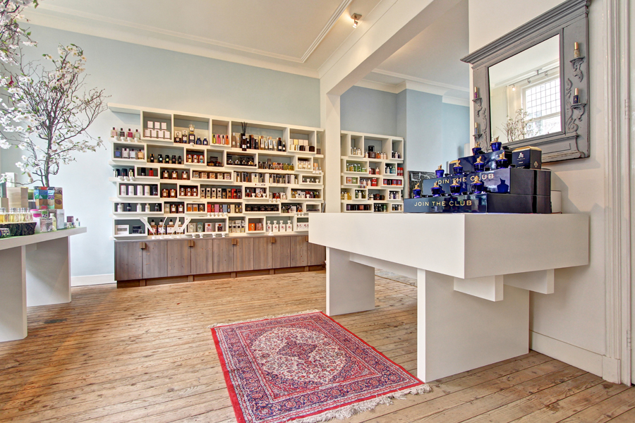 The entire interior design of this haute Perfumery in the city of Eindhoven is made by Tom. The open structure of the cabinets work perfect to showcase the bottles of perfume. The big chairs are used by Eau de Cologne for pedicure treatment.
