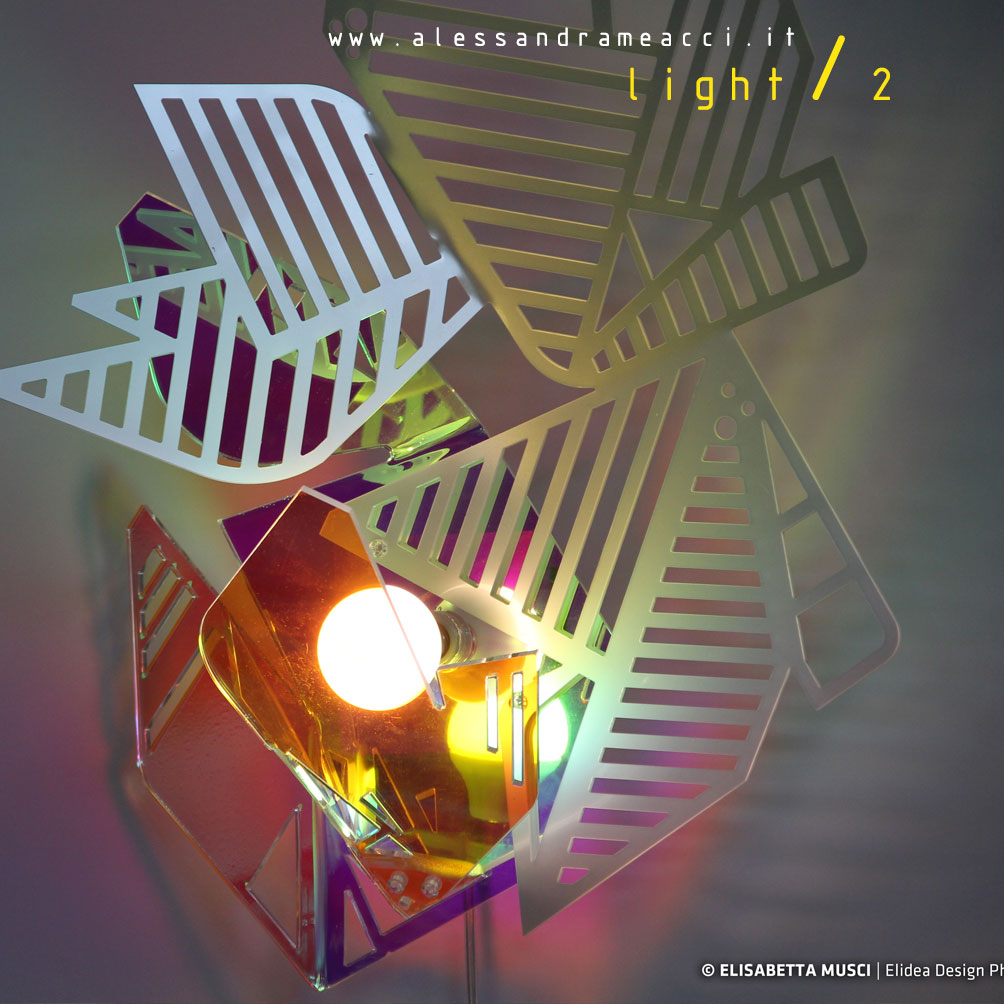 LIGHT/2 è una lampada che disegna la parete, proiettando ombre e riflessi iridescienti. Il corpo della lampada è in plexiglass madreperla bianco, tagliato al laser creando un disegno di vuoti e pieni; su esso si innesta un paralume in RADIANT, che riflette la luce verso la parete, in modo da illuminare il corpo madreperla e […]