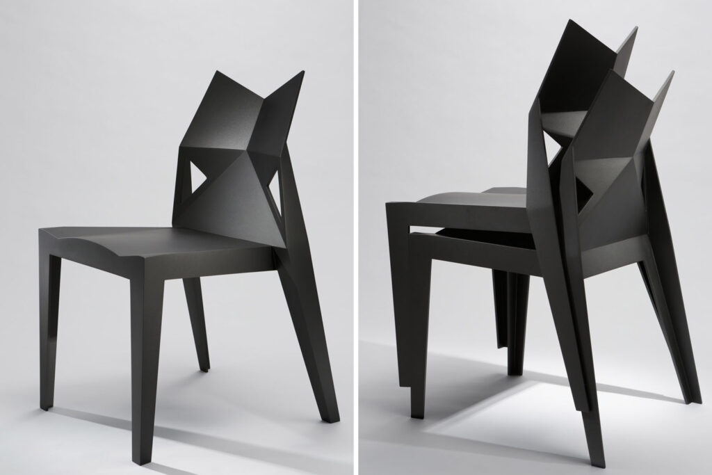 F-light chair was inspired by the stealth fighter jets. Its light and thin design resembles Japanese Origami and is able to be stacked easily.