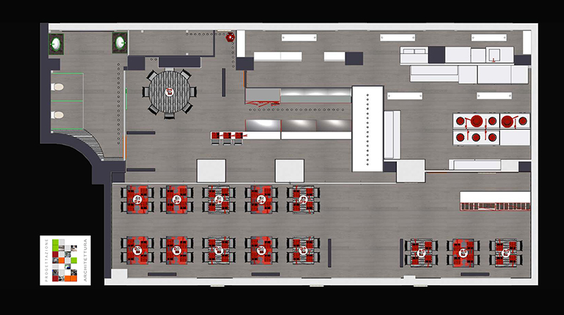 Progettazione Arredamento Ristorante Cinese su tre livelli cucina industriale wok 150 posti