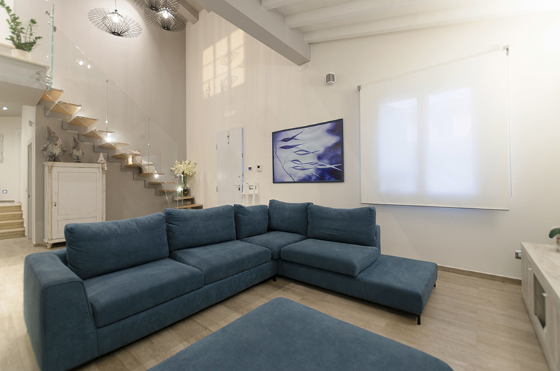 Casa NC nasce dallâesigenza di creare un ambiente caldo, moderno ed accogliente, adatto ad ospitare una famiglia giovane e intraprendente, ridimensionando l’enorme spazio della zona giorno e cambiandone la scala attraverso accorgimenti volumetrici, materici e cromatici. Il soggiorno, dallâalto soffitto, individuato dalla presenza del sofà color blu petrolio, appare chiaro e luminoso grazie ad ampie […]