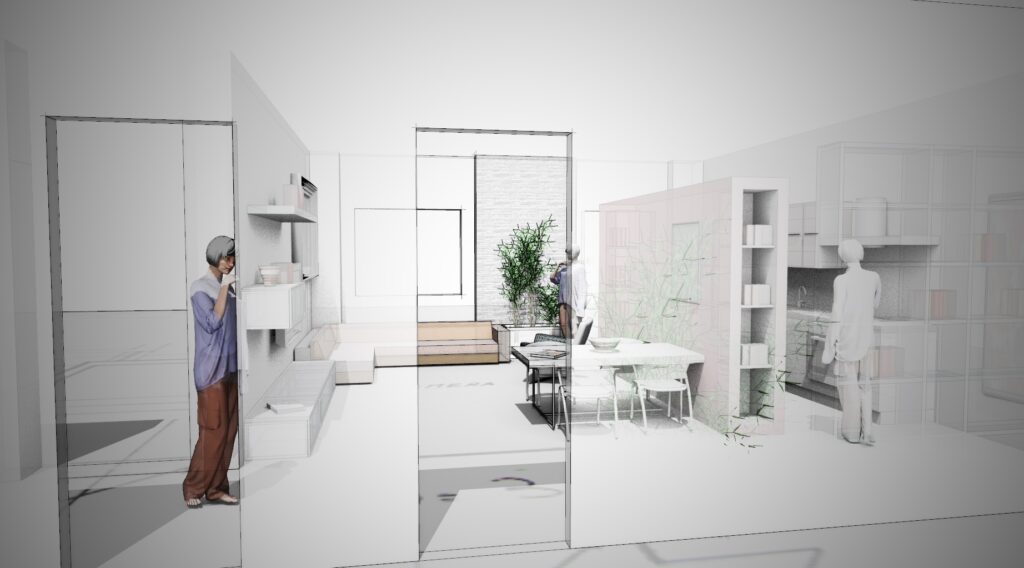 I6 House is a design plan for a house that is located in developing rural housing area in Isahaya city Nagasaki Prefecture. The eaves and wall of each masses that is slanted towards the skies with different directions is covering the mass of the house finished in red cedar material. The building stands as a […]