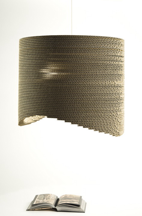 Deda è una sospensione realizzata in cartone ondulato, derivante dall’intersezione di due cilindri. è una delle lampade progettate con Melissa Giacchi per la prima collezione B-TRADE. diametro 50 cm.