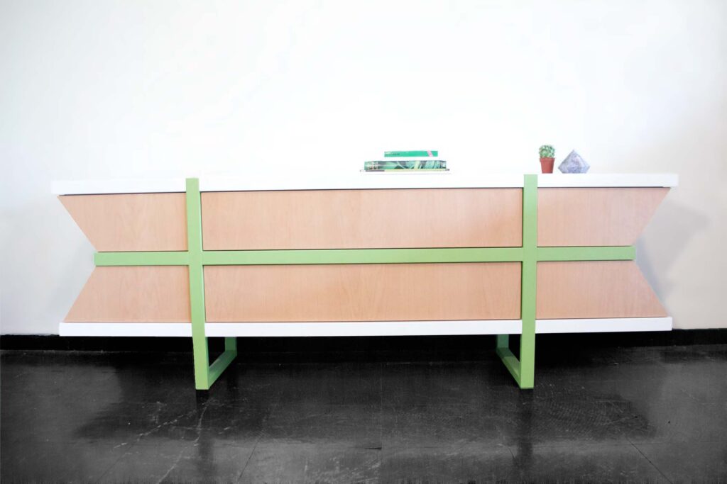 Punxa, is a sideboard made of wood 100%.It is blocked by the structure that surrounds and compresses the box,it is also combined with three colours or three materials,that shows the diversity of this piece. Made % 100 of beech wood. Painted white and green. Composed by 4 doors and 2 drawers. The drawers are tailored […]