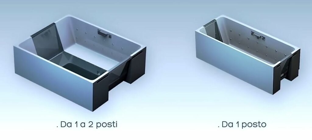 Vasca reversibilmente estendibile da uno a due posti o da mezza a un posto standard(Brevetto rilasciato) Link video:
