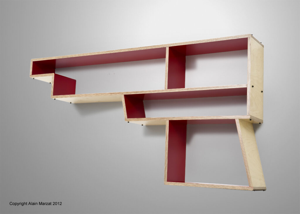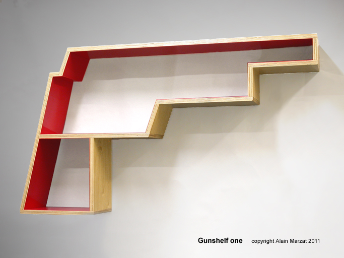 ETAGERE BIBLIOTHEQUE Uzigunshelf Un des trois meubles crées pour la série Armed for Peace détournement soft de lobjet guerrier. UziGunshelf est réalisé en multiplis de bouleau vernis dont lintérieur est laqué rouge sang. Existe également en Hètre , en Frène et en Chène. Dimensions : long 150 x haut 75 x […]