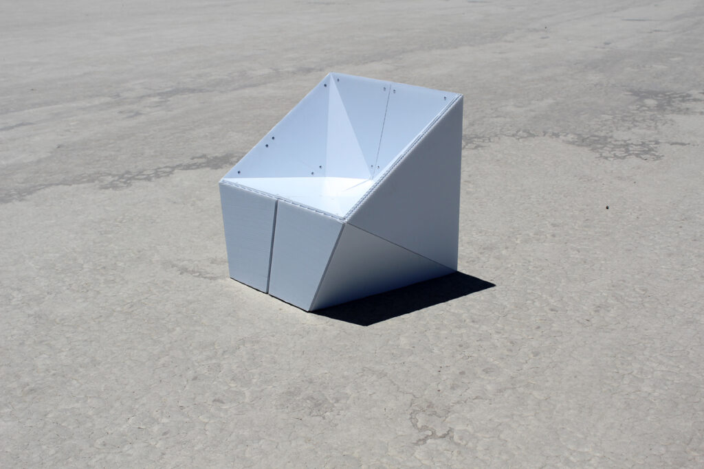 Armchair made with corrugated plastic and fitted with aluminum screw posts. Modular, lightweight, weather resistant, waterproof, ideal for indoor/outdoor use and is 100% recyclable! Available finishes: 3mm 100% wool felt.