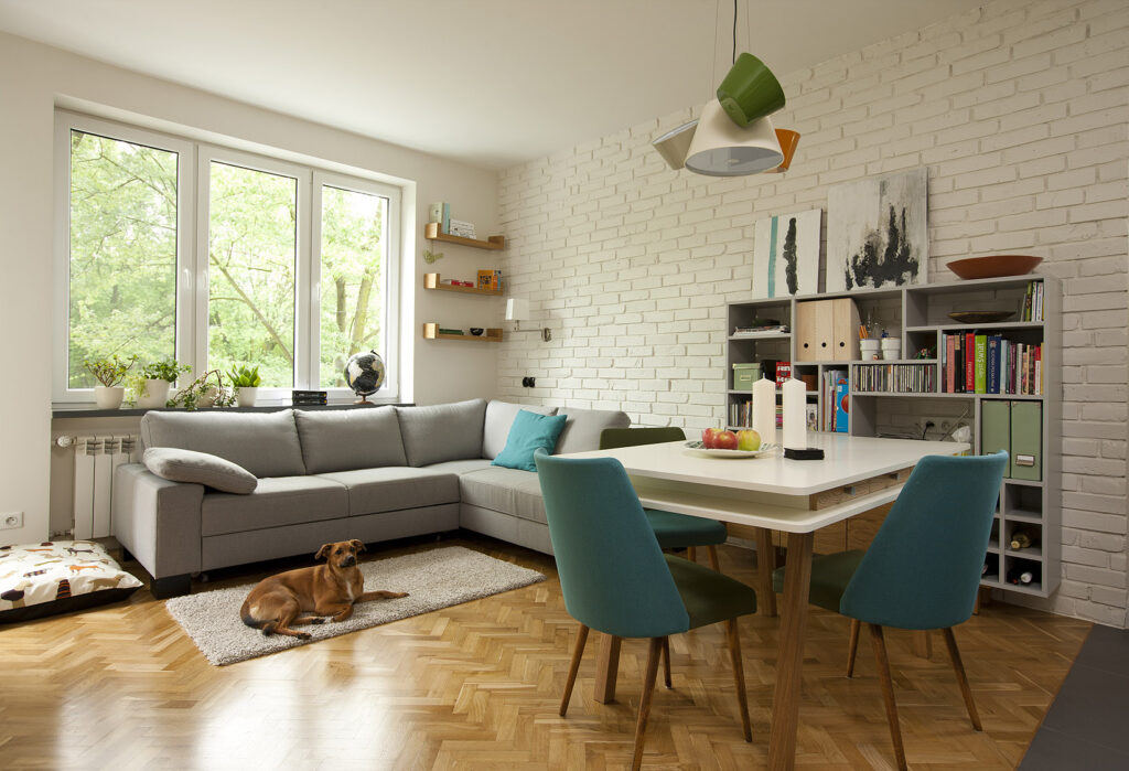 Small apartment in in beautiful district of Warsaw Żoliborz. 36m2 for the lady and her dog. Inspiration 60’s design.